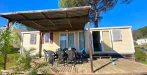 Our Camping Tikayan Les Cigales is located in the heart of Provence near the village of Le Muy, between the Massif des Maures and the Massif de l'Esterel. 20 km from the sea, we offer rentals of air-conditioned chalets and mobile homes for 2 to 10 people. Take advantage of our unique aquatic area in the Var of 16,000m2 which has 9 pools, and has giant slides (4 tracks of 35 meters and 1 track of 75 meters in a loop) which descend from a Mayan pyramid, a waterfall watering a lagoon of 400 m² as well as a paddling pool, a traditional swimming pool, a spa pool and 1 bubble pool with 40 places, a fast-flowing river of 120 meters and our Aquatic Garden for the happiness of the little ones: two paddling pools with games of children (depth from 15 to 30 cm). Several pools in the water park are heated depending on the season. The Thalgo wellness center offers massages, body and face treatments, nails, and a fitness room, for holidays placed under the sign of relaxation. Our Camping Les Cigales offers many sports and leisure facilities: multi-sports ground, tennis court, several children's play areas and boules pitches. For the happiness of your family, our entertainment team offers a children's club in in the spring and summer vacations, sports tournaments for teenagers and adults, and animated evenings. On the services side, the campsite has a restaurant area, a grocery shop and a laundry.