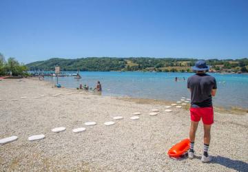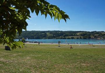Camping 4* with pitches made of grass just by the lake of Paladru with guarded beach!