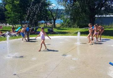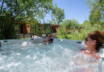and very complete facilities: beautiful aquatic area with a view of the lake, 2 play areas, tennis, volleyball court and pétanque...