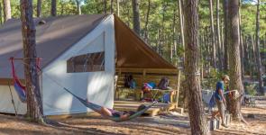 Our lodges sleep 4 to 6 people and offer every comfort. Roofed and timber-framed, you can sleep in the forest in a cocooning atmosphere and connect with nature, you're there! You'll be totally self-sufficient, enjoying a unique experience in a canvas shelter in the shade of the pines.
